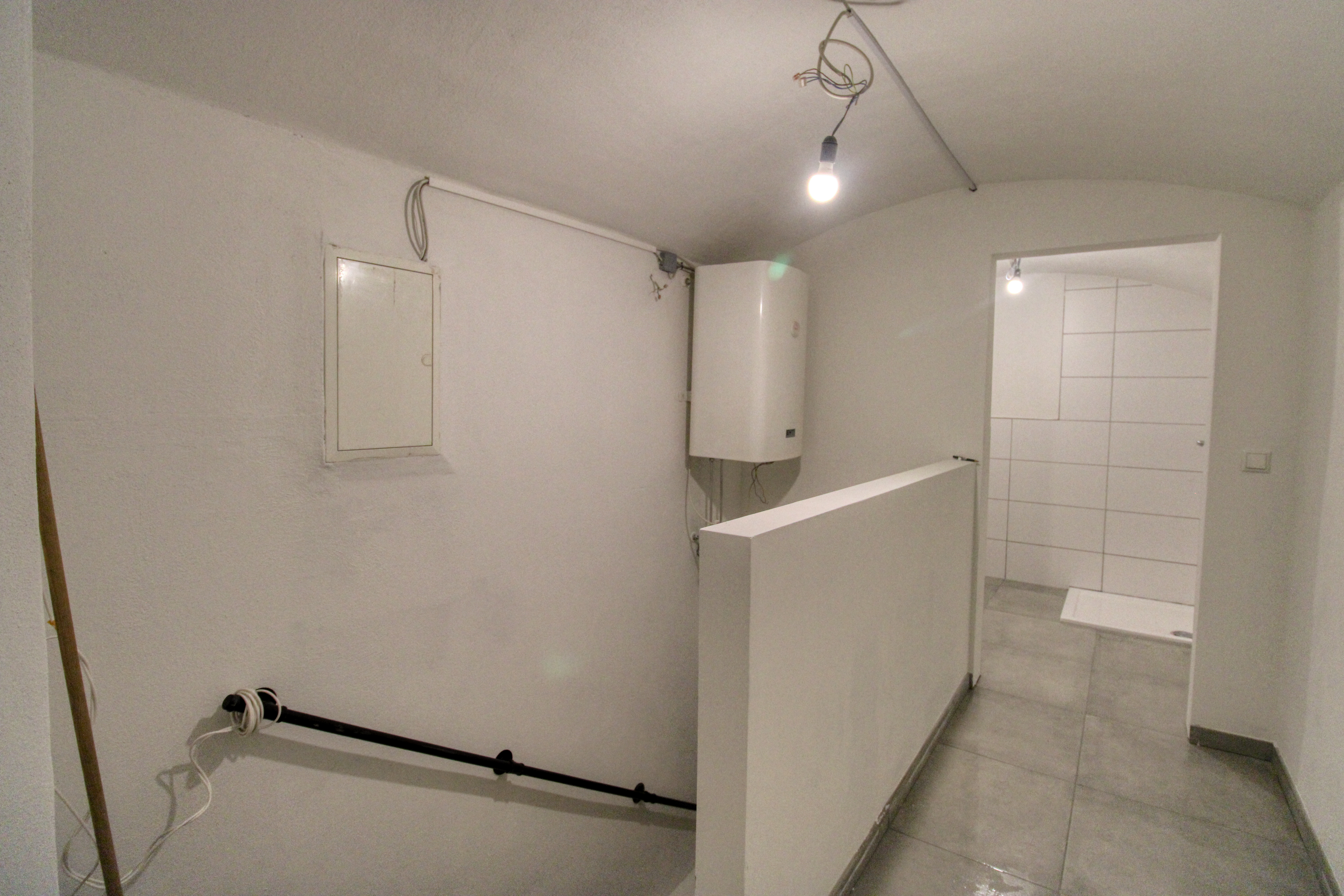 Aufteilung: Von der Straße aus gelangt man über den separaten Eingang in den Gewölbekeller. Neben der Garderobe ist über eine Schiebetür auch der Sanitärbereich mit Waschbecken, WC und Dusche zu finden. Über die Treppe gelangt man in den Hauptraum wo Küchenanschlüsse installiert wurden. Der Ausgang zum Allgemeingarten erreicht man durch eine weitere Tür.
